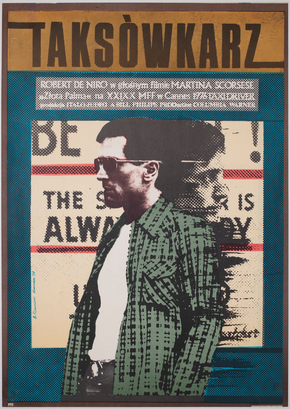 The Polish poster for Scorsese's classic Taxi Driver This Polish poster forTaxi Driver, designed by acclaimed graphic artistAndrzej Klimowski, delivers a bold, pop-art reinterpretation of Martin Scorsese’s gritty urban masterpiece. Its layered halftone textures, stark colour contrasts, and striking portrait ofRobert De Niro capture the film’s descent into isolation and obsession with powerful visual economy. Scorsese’s landmark thriller—featuring unforgettable performances from De Niro andJodie Foste.r A highly sought after and collectible poster.