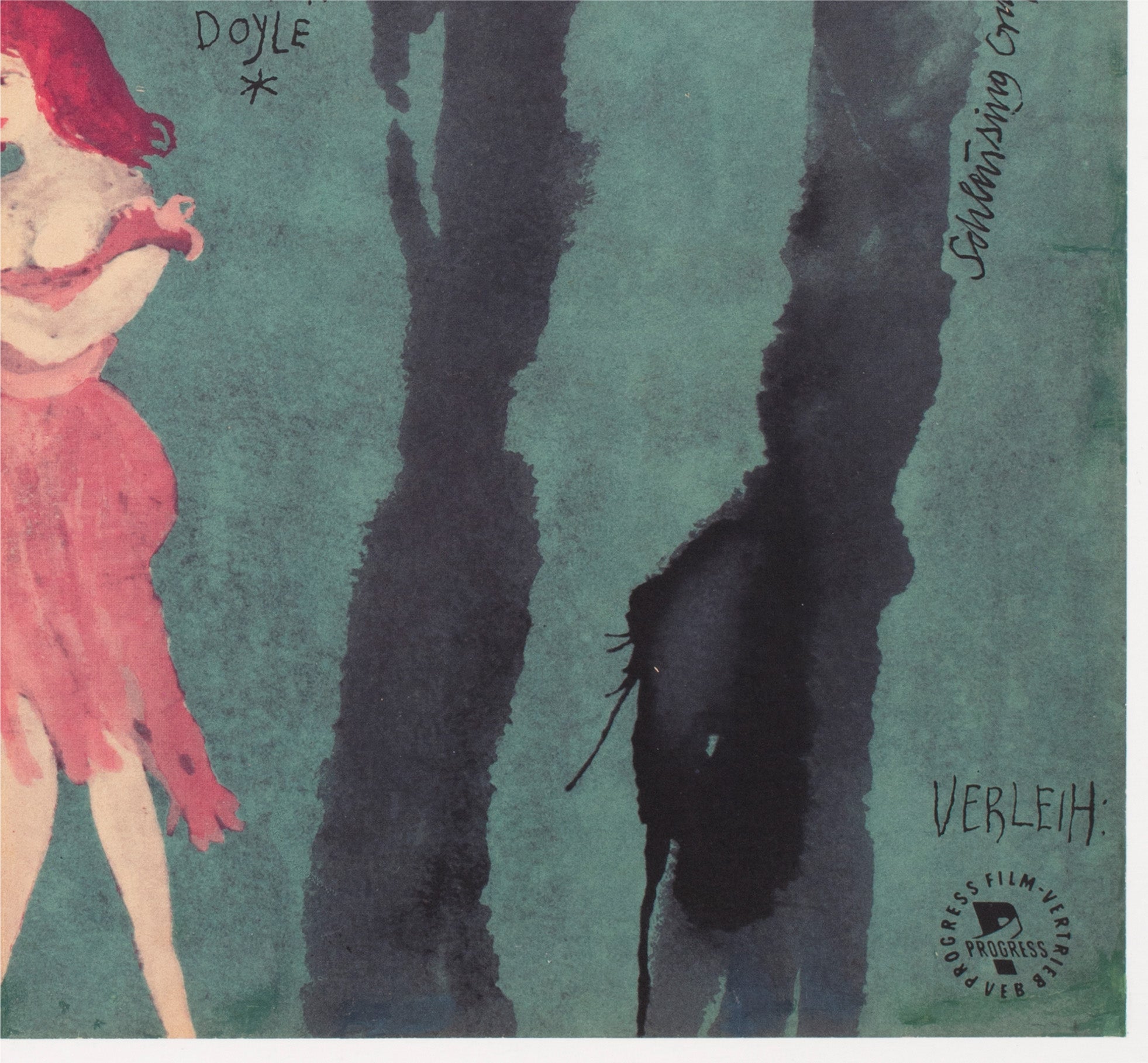 Schleissing Grouppe, the imaginative East German design collective, is renowned for its bold graphic style and evocative cinematic imagery—seen to brilliant effect in this sought-after Hound of the Baskervilles poster. Blending modernist composition with an atmospheric sense of mystery, the group’s work reflects the distinct visual culture of the Cold War era while showcasing their flair for innovation. Their posters remain highly collectible today for their originality, rarity, and unmistakable artistic character.