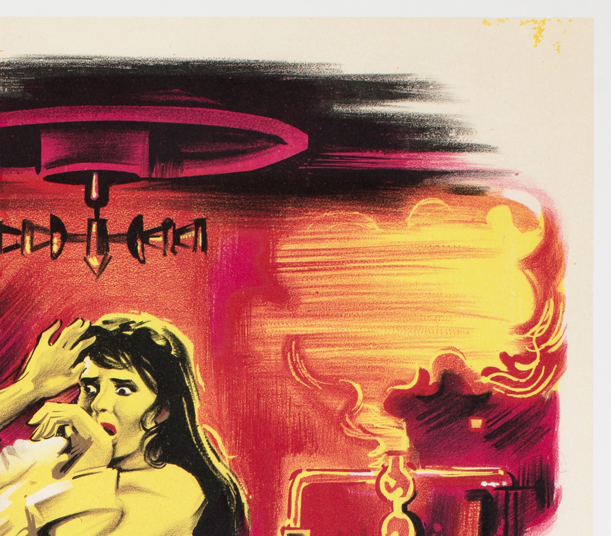 This 1964 moyenne poster for L’Empreinte de Frankenstein — the French release of The Evil of Frankenstein — features striking artwork by Russian-born illustrator Boris Grinsson, a prolific poster artist known for his dynamic and expressive style.