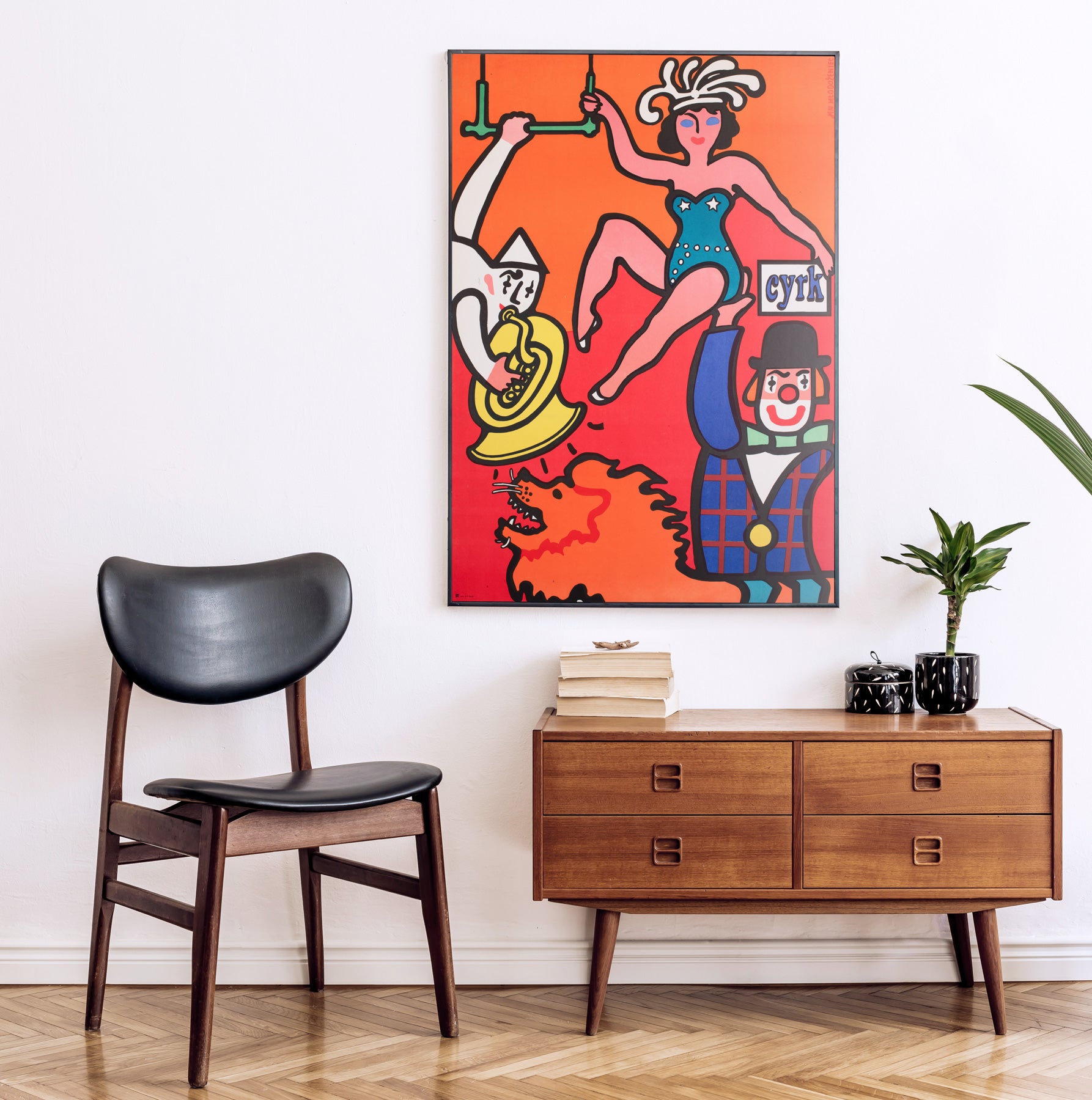 The ‘Cyrk” circus poster in Poland appeared for the first time in 1962 when the ZPR (Zjednoczone Przedsiębiorstwa Rozrywkowe, or United Entertainment Enterprises), the state agency that oversaw the circus, commissioned leading artists from the Polish School of Posters to develop a modern approach to the circus poster.