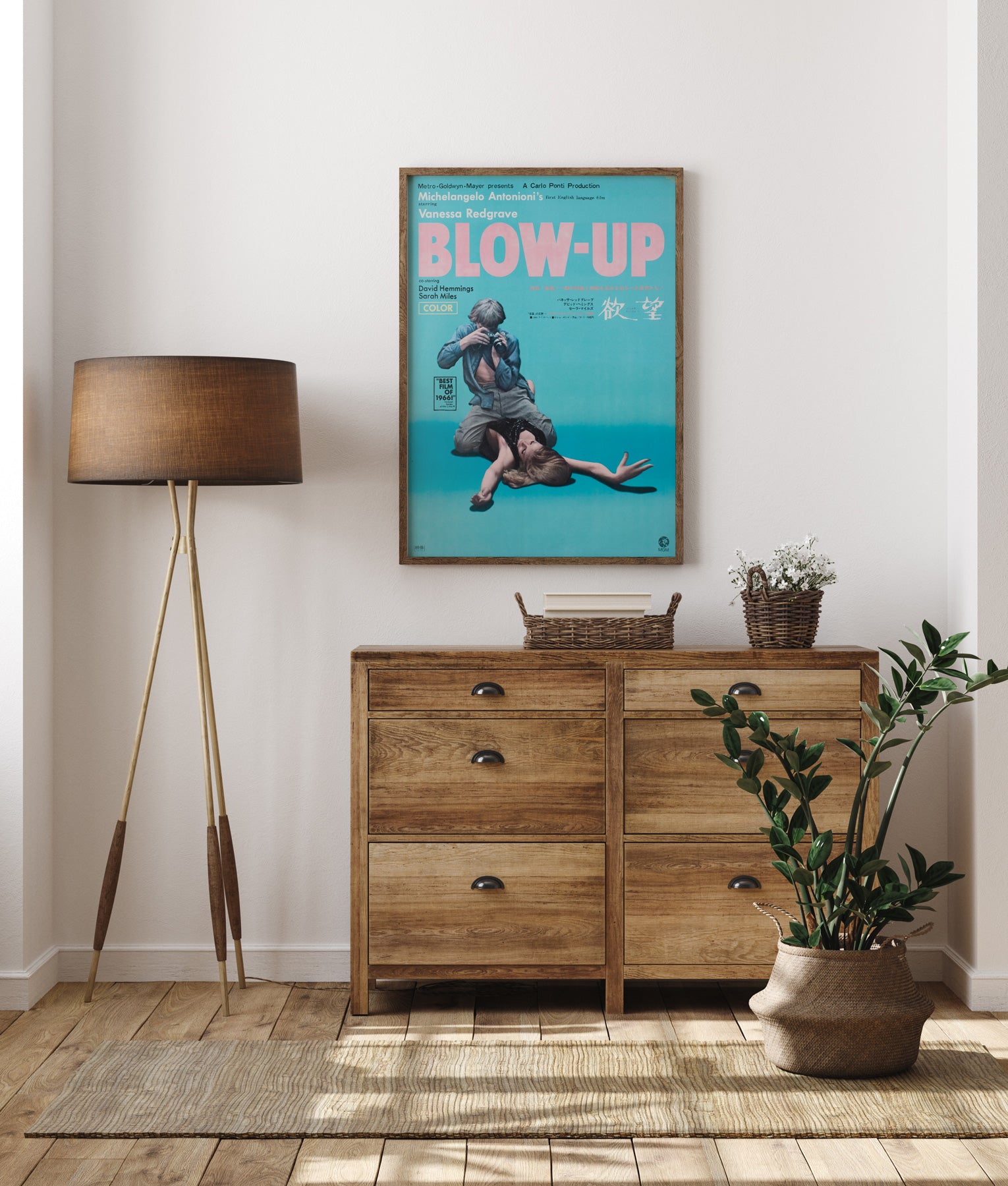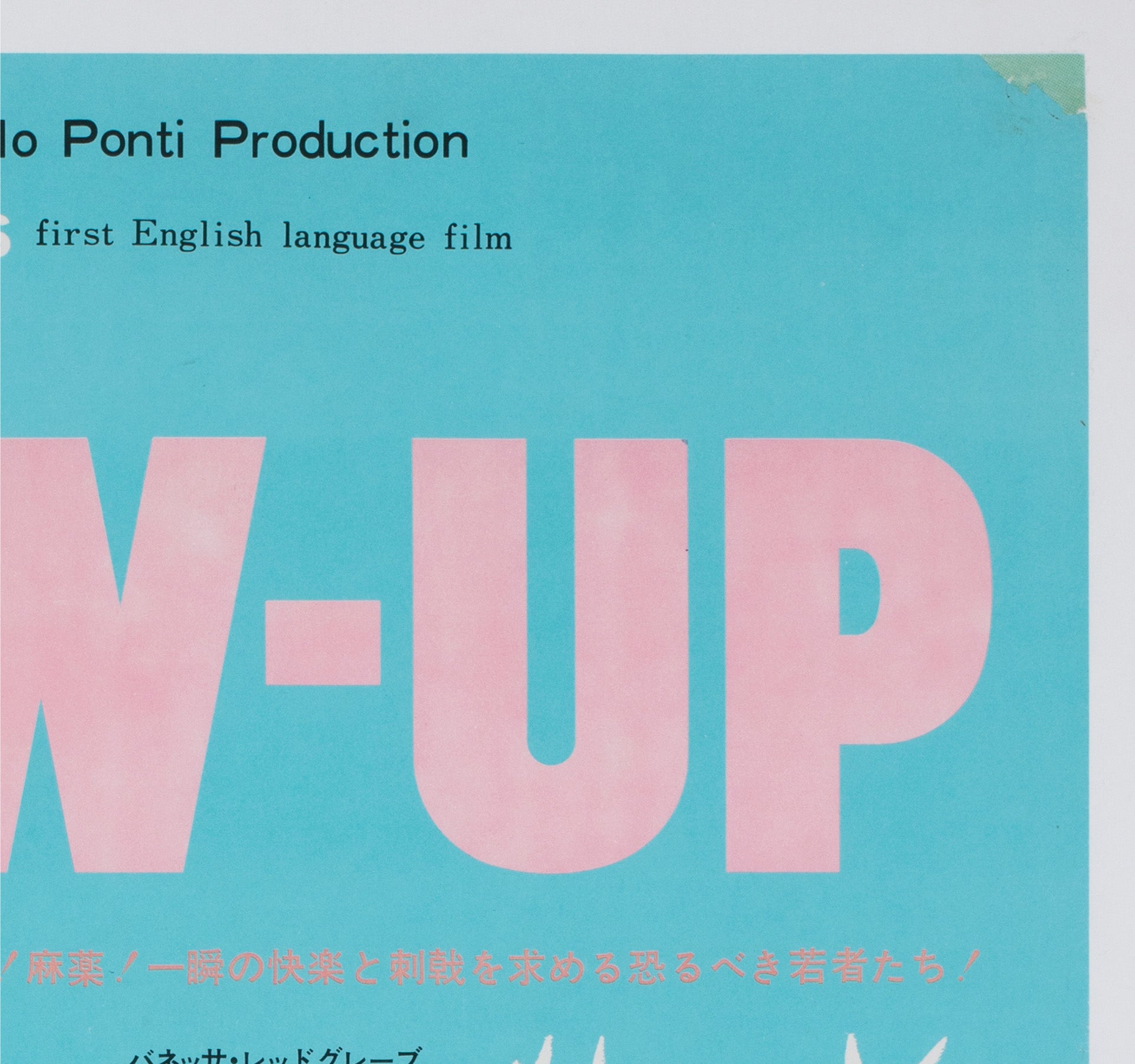 This original 1967 Japanese B2 poster for Blow-Up is a superb piece of late-1960s cinema design, with its cool colour palette, striking typography and provocative central image giving it immediate visual impact. Stylish and unmistakably of its moment, it perfectly reflects the modern, fashion-conscious world of the film. Lovely colours.