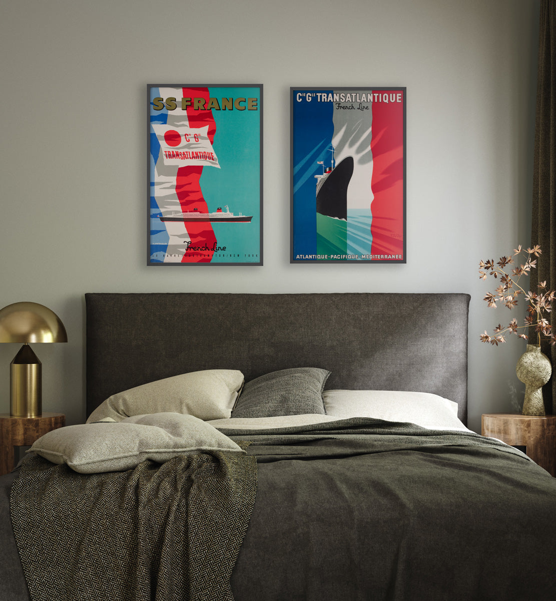 Cie Gle Transatlantique 1950s French Line Travel poster, designed by Paul Colin. A lovely design with wonderful bright colours!