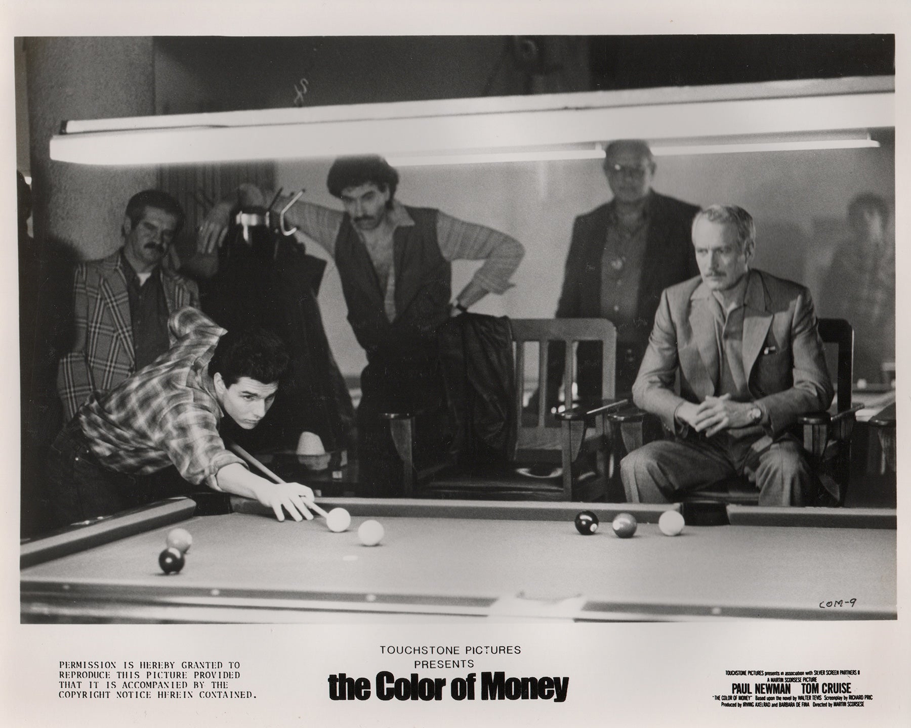 Original 8x10 inches Press Publicity Still for The Color of Money (1986) starring Paul Newman, Tom Cruise and Mary Elizabeth Mastrantonio and directed by Martin Scorsese.