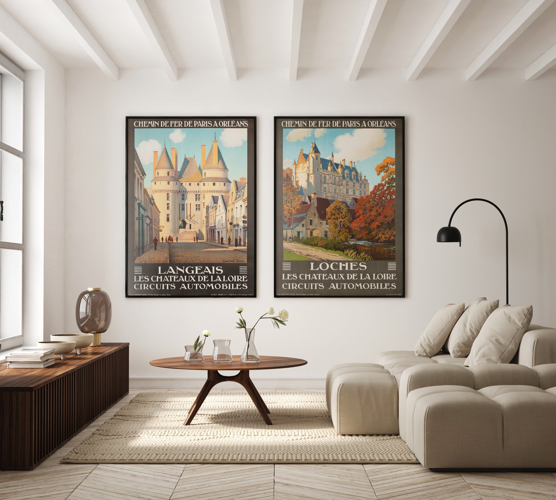 This wonderful orriginal 1920s poster advertises travel to the Chateau Langeais, located in the Loire Valley region of France and was created by the French painter and poster artist Constant Duval, best known for his vibrant Art Deco-style railway posters. Constant Léon Duval (1877–1956) posters advertised travel to scenic destinations around France, promoting tourism for the Paris to Orléans railway company (Chemins de fer de Paris à Orléans).