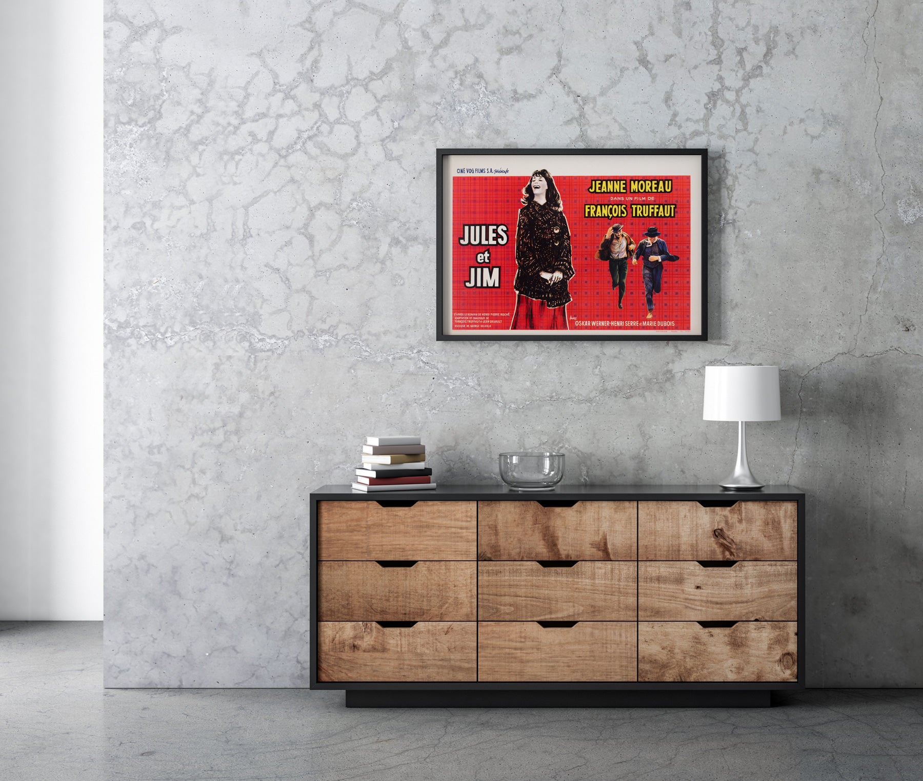 A rare and highly sought-after collectible, the Belgian film poster for Jules et Jim (1962) stands out as a unique and visually striking piece, created specifically for the film’s Belgian release. Distinct from other international versions, this poster captures the spirit of Truffaut’s New Wave classic with its own regional flair and design sensibility.