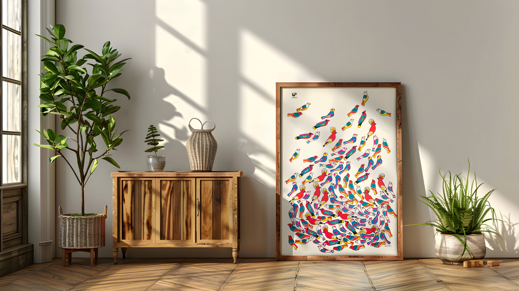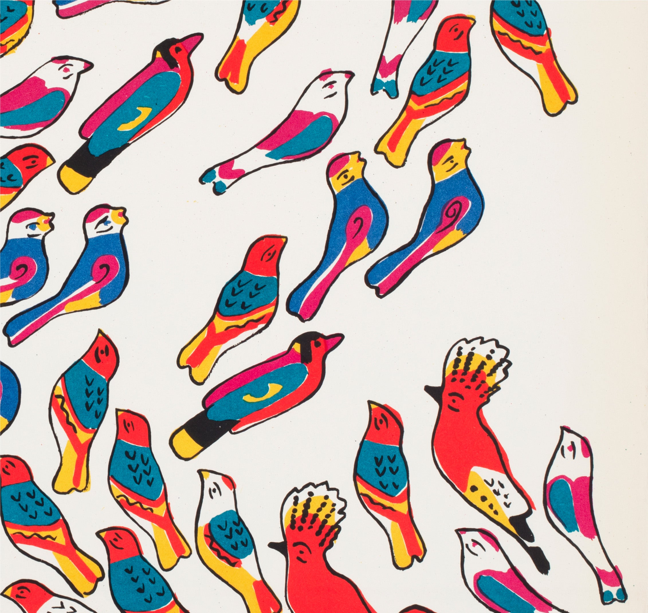 The acclaimed design features brightly coloured birds blending folk elements into pop art design in a style reminiscent of folk art paper cutouts, or wycinanki.