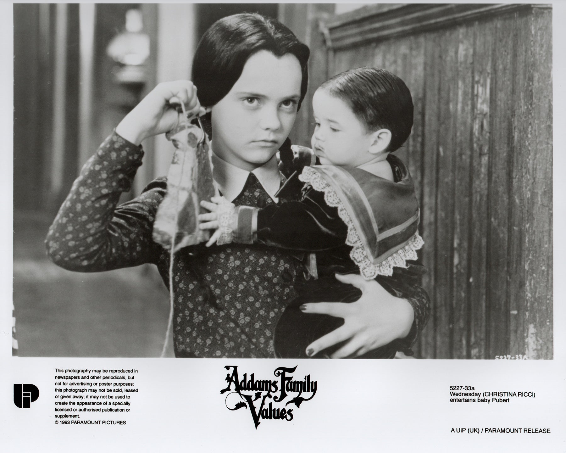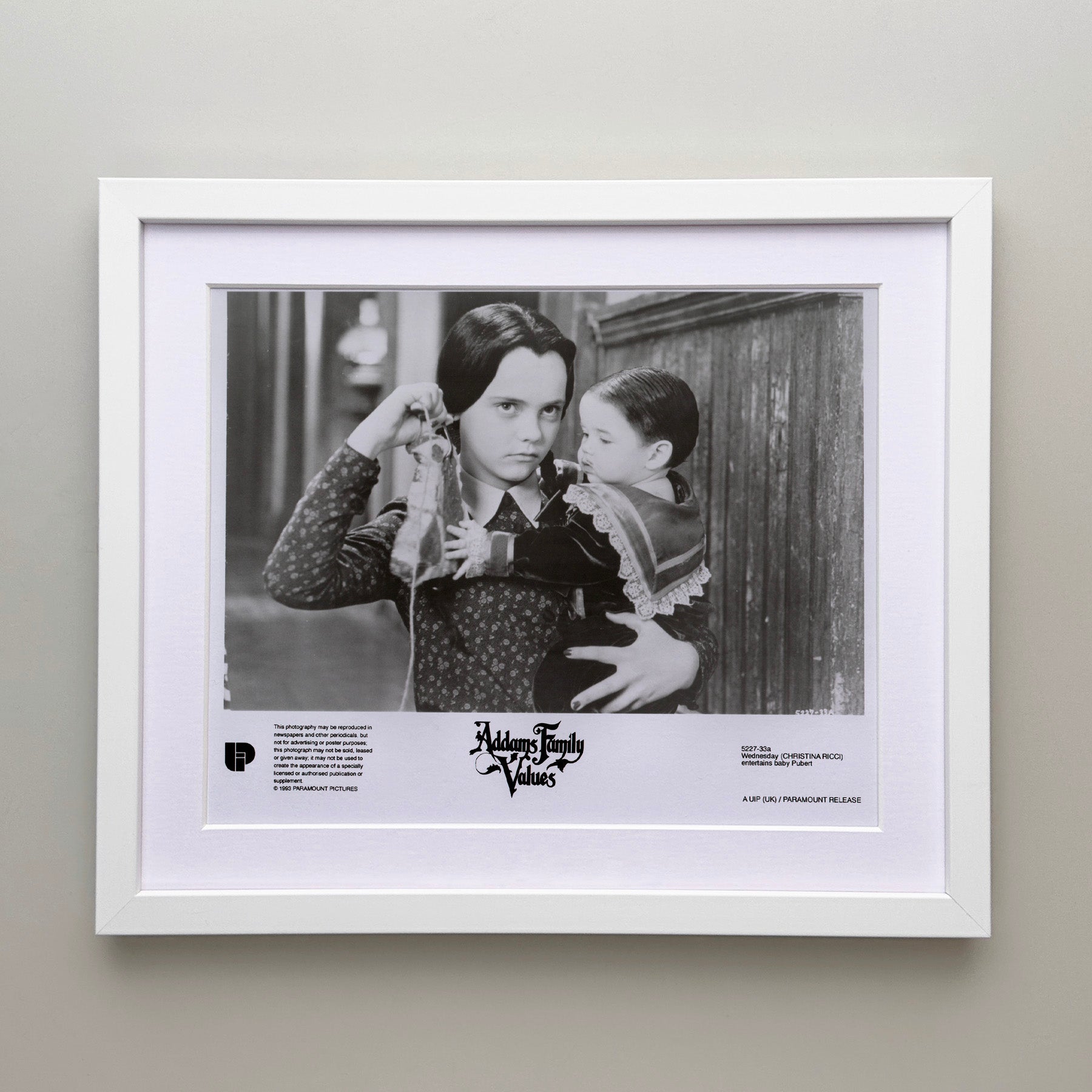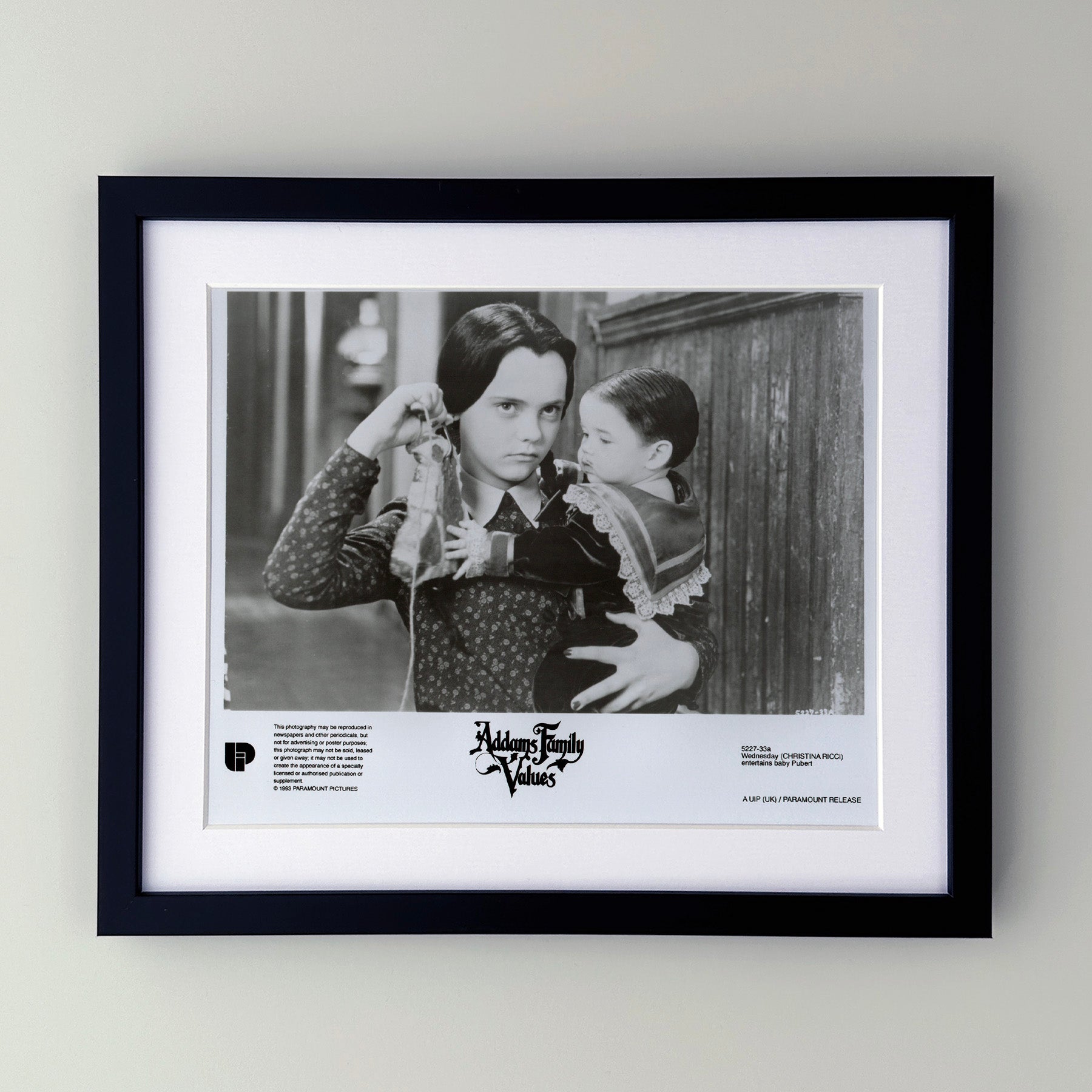 Original 8x10 inches Press Publicity Still for Addams Family Values (1993) starring Anjelica Huston, Raul Julia and Christopher Lloyd and directed by Barry Sonnenfeld.