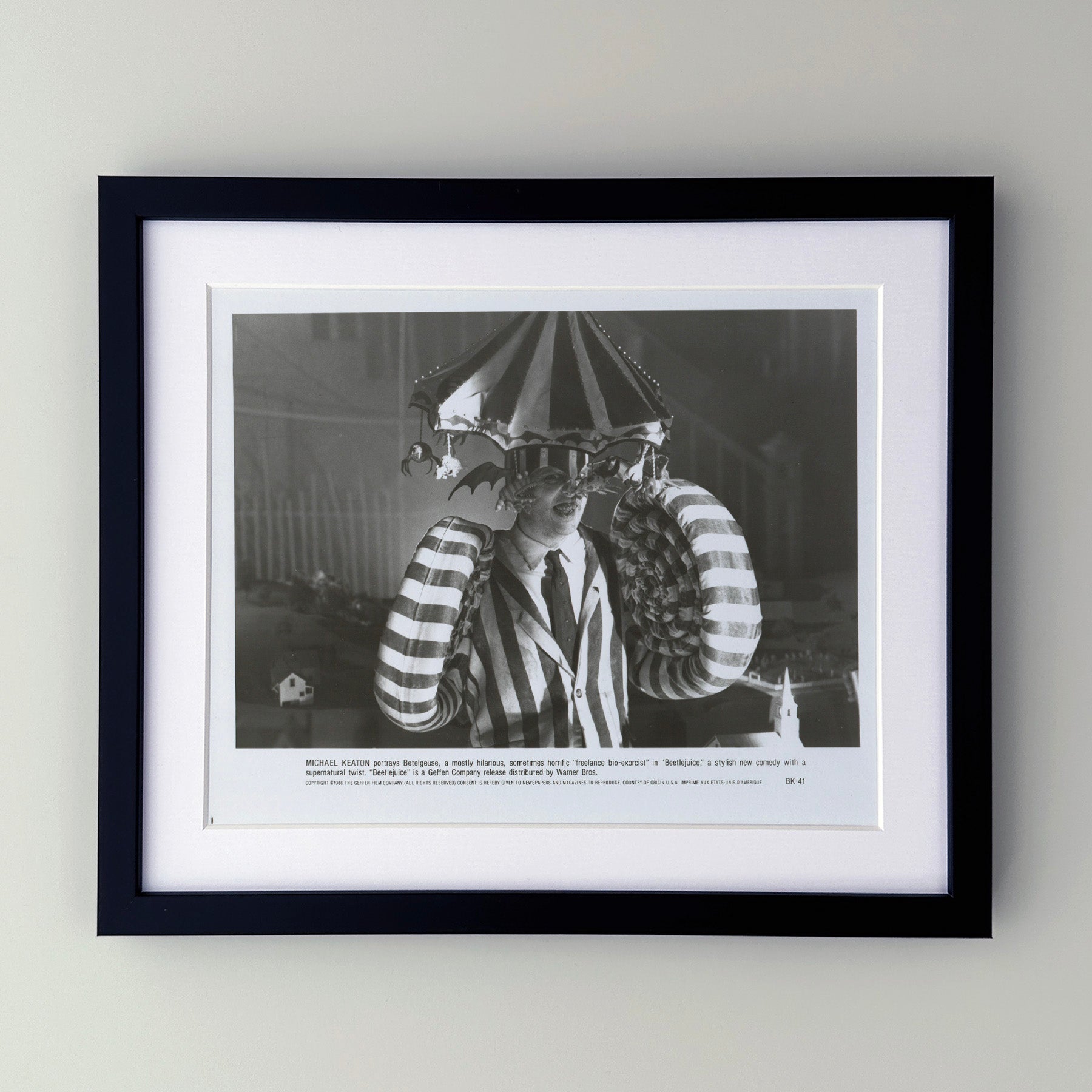 Original 8x10 inches Press Publicity Still for Beetlejuice (1988) starring Michael Keaton, Geena Davis and Alec Baldwin and directed by Tim Burton.