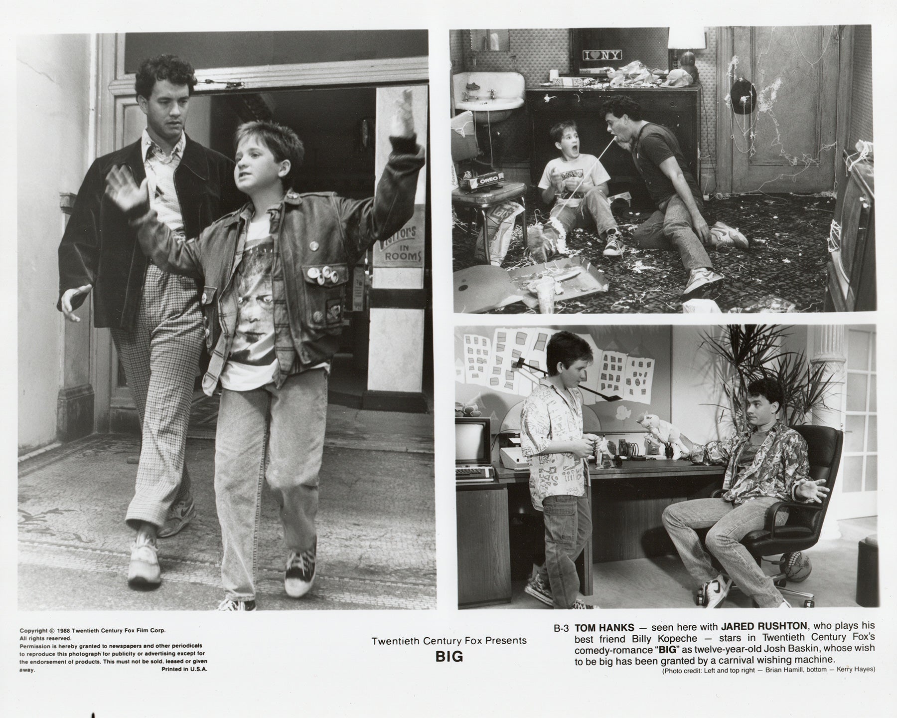 Original 8x10 inches Press Publicity Still for Big (1988) starring Tom Hanks, Elizabeth Perkins and Robert Loggia and directed by Penny Marshall.