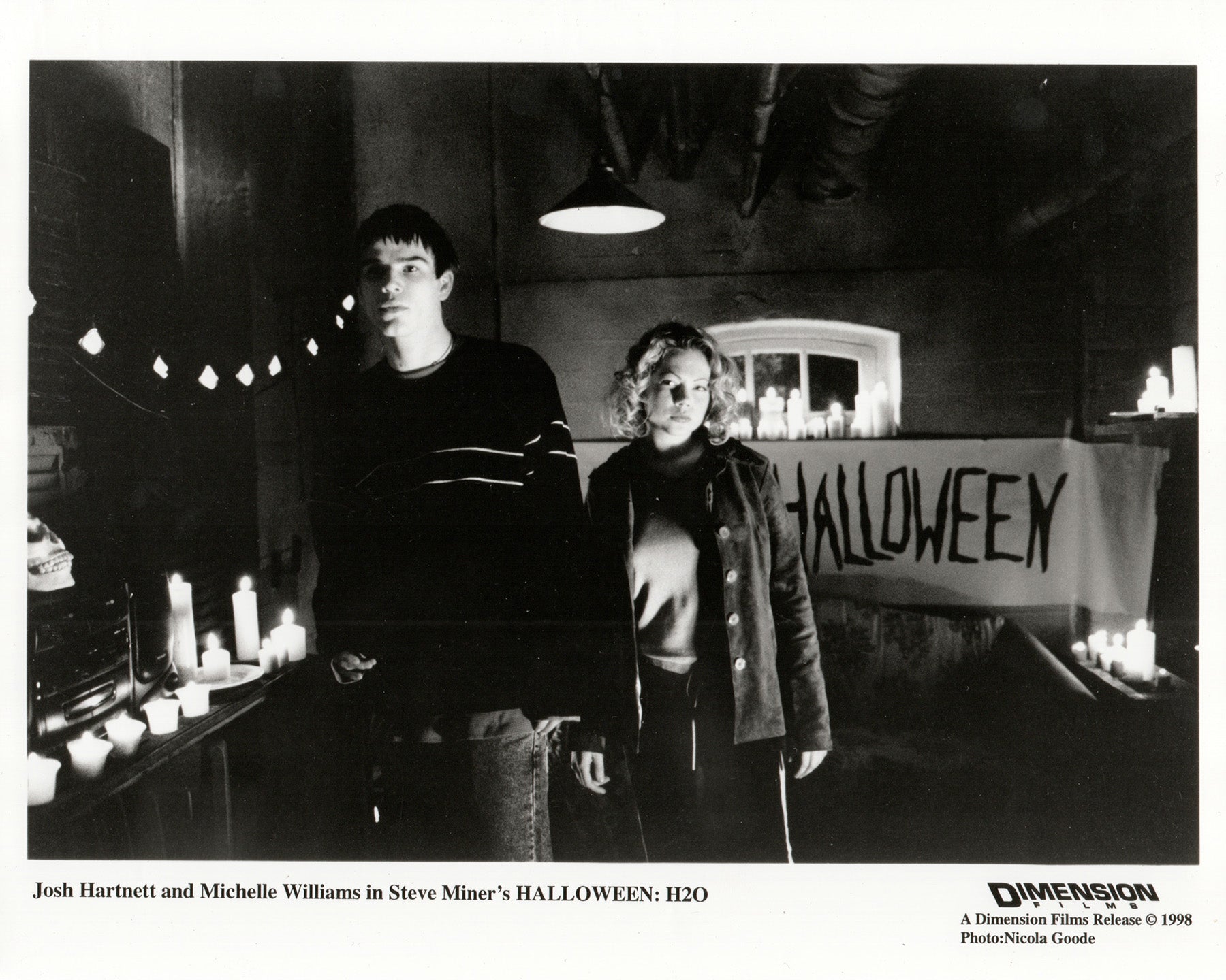 Original 8x10 inches Press Publicity Still for Halloween H20 (1998) starring Jamie Lee Curtis, Josh Hartnett and Michelle Williams and directed by Steve Miner.