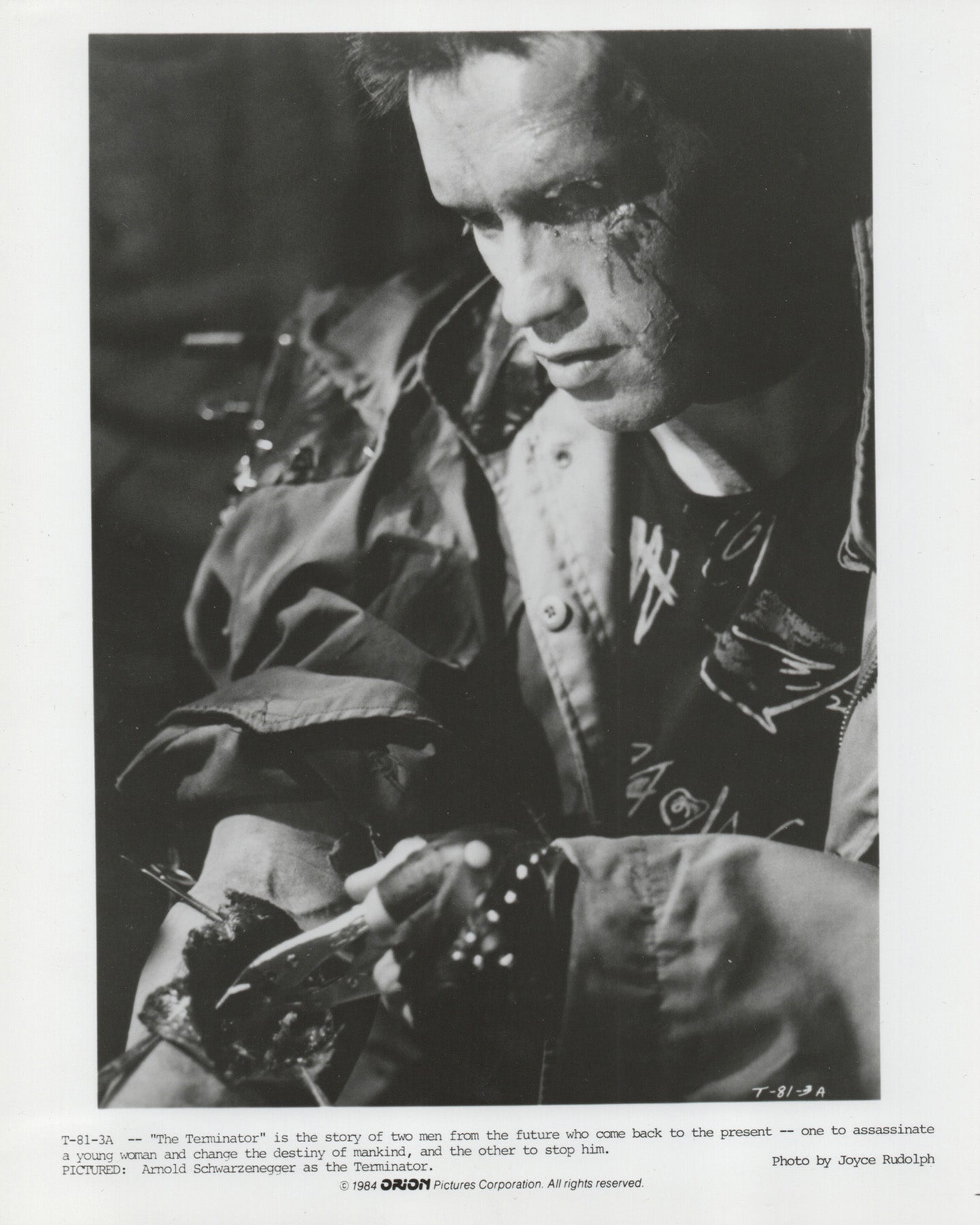 Original 8x10 inches Press Publicity Still for The Terminator (1984) starring Arnold Schwarzenegger, Linda Hamilton and Michael Biehn and directed by James Cameron.