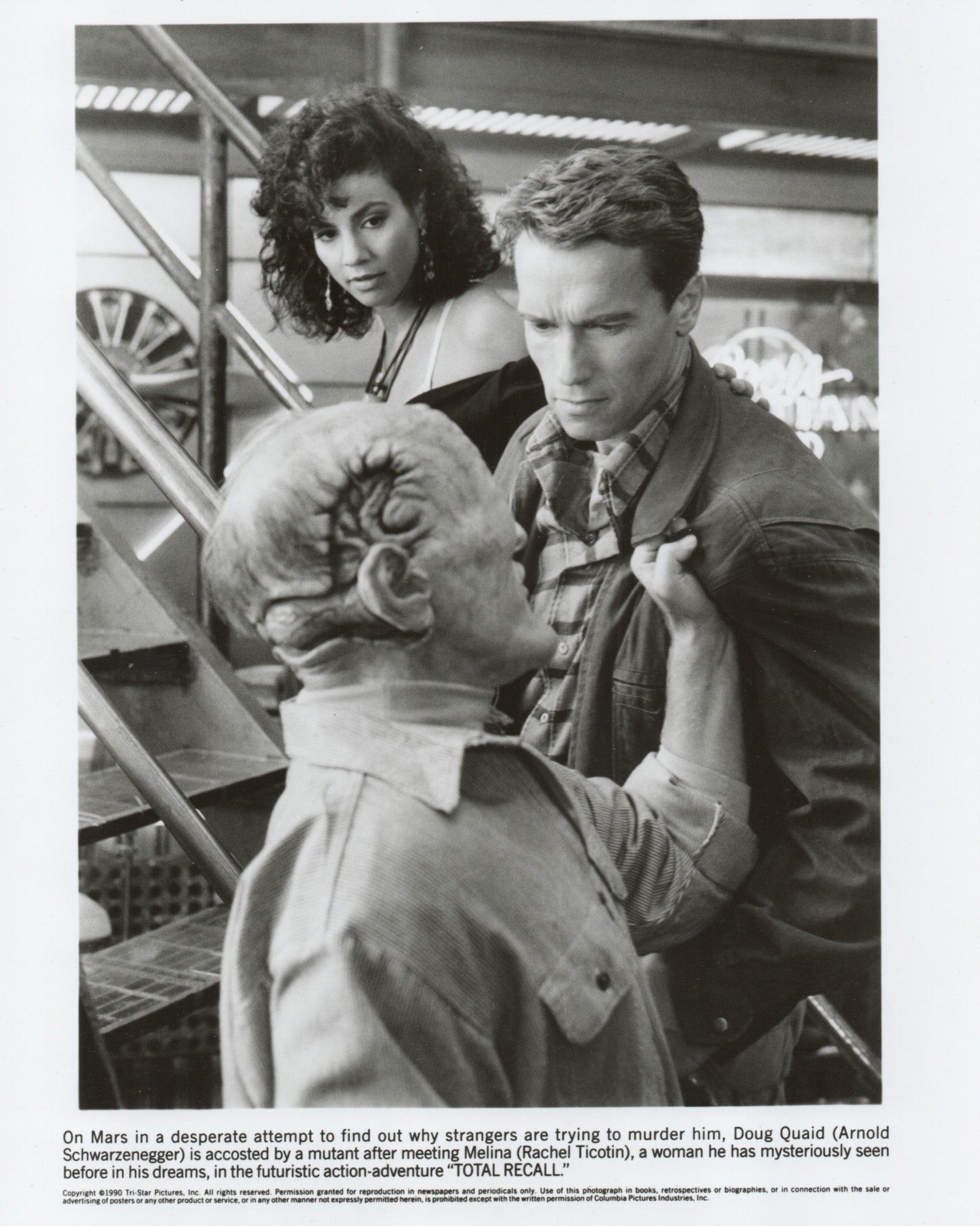 Original 8x10 inches Press Publicity Still for Total Recall (1990) starring Arnold Schwarzenegger, Sharon Stone and Michael Ironside and directed by Paul Verhoeven.
